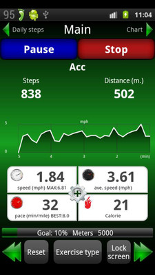 - Using the accelerometer program counts steps and, depending on the distance and weight count calories.