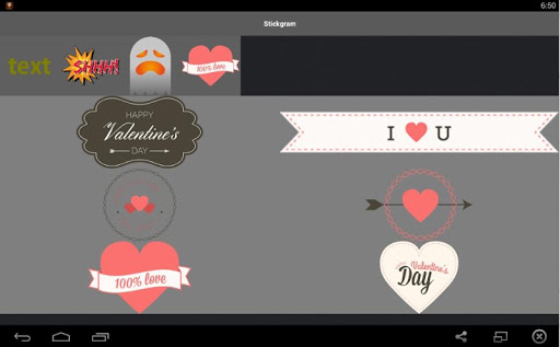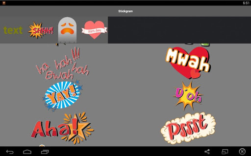 Take a photo within Stickgram camera or choose an existing photo from gallery then add the text or stickers