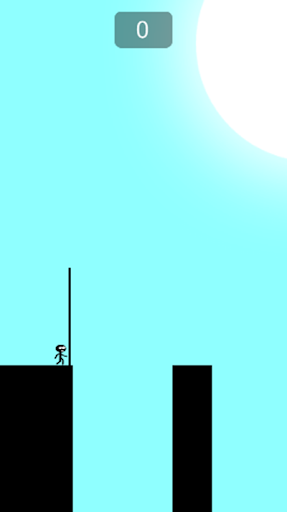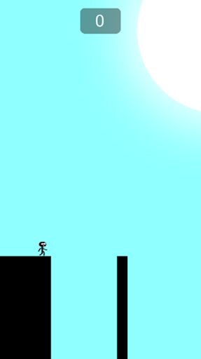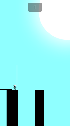 Player must hold tapping the smartphone screen while the black magic stick is growing up. It will be stretched longer and then stickman shatter the stick. The black bar fall and forms a line bridge which connect two high platforms