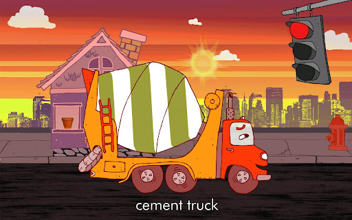 "I wanna play the cars one!" - Leela, age 3 Stop and Go! teaches toddlers and preschoolers about different kinds of cars and trucks. It has a toddler friendly design that lets kids operate a stoplight, or touch the cars to make them stop and go, learning more about each along the way. Watch your kids learn new words, and be more curious about cars on the road after playing Stop and Go! Perfect for kids 1-3. • Make the cement truck mix cement! • Sound the firetruck's siren and find his dog! • Move the bulldozer's shovel! • See who is inside the ice cream truck! The beautifully illustrated app has 12 different vehicles, each with a custom animation. Stop and Go! also has a second layer of interactivity that let's kids explore the environment: • Make it day or night by making the sun set and moon rise. See the cars by day, dusk, night and dawn. • Make it rain. • Turn the house lights off and on. • Make the fire hydrant spew water. • (and more!) The app was designed with child development milestones in mind, and has a toddler friendly interface that lets kids navigate on their own while learning new vocabulary. You can change the language to English or Spanish in the settings menu. Justin Goldwater, the illustrator for Stop and Go! has exhibited his art across the US and internationally, both solo and with the Austin based art collective Okay Mountain. Learn more about Justin, the app, and Shortstack on www.shortstackapps.com. Coloring sheets available on the Stop and Go! page of shortstack's website. http://shortstackapps.com/stop-and-go/