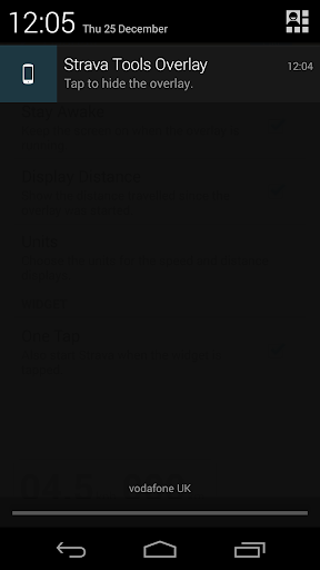 The widget can be used to turn the overlay on or off, and can be set to launch Strava (and automatically start recording an activity). This means you can one touch launch Strava and the overlay - neat, right?