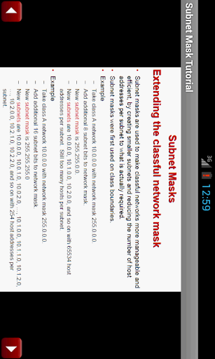 This is the app where you will get all the details of subnet mask,variable length subnet mask VLSM (Successive subnets w/a 23 bit subnet mask,w/a 30 bit subnet mask) and Classless Inter-Domain Rounting (CIDR) (Supernet w/ 23 bit mask). The language and the information shown is in such way that every one can understand