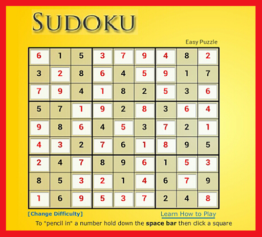 Solved in a standard 9x9 size, and each line in the diagram is a mind game type should take place only once the numbers from 1 to 9 in each column and each 3x3 square. Each column of the objectives of Sudoku, each row and each digit is to fill each container 9 to 1 so that only a single use. A sudoku puzzle is given you some numbers filled in and your objective is to find how to place the remaining numbers. Easy, medium, there are three different degrees of being difficult. There is no need to be a math genius to solve the puzzle Moreover!Sounds easy, right? Because really easy! A great brain exercise game. Has a nice and easy to use graphical interface. It's free. It is a game that can be addictive that you can spend a good time.