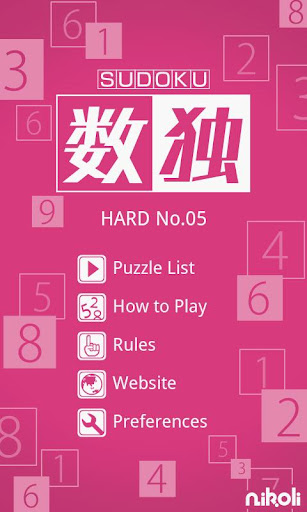 The origin of SUDOKU fever, the Japanese puzzle company NIKOLI Co., Ltd. has released a Sudoku application for Android OS!