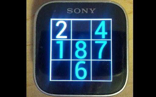 Sudoku designed specifically to play well on the Sony SmartWatch and Sony SmartWatch 2(screen compatibility mode). Includes 40 Sudoku puzzles completely playable from your wrist! Four difficulty settings with ten levels each. Auto saves when exiting the app on the watch and even saves on each level so you can switch puzzles without loosing progress.