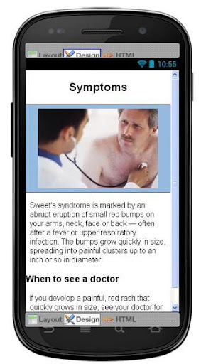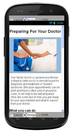 This app contains sweets syndrome diseases information for knowledge if you need to apply then please contact to nearby doctor. Useful information but is not a substitute for professional medical advice, diagnosis or treatment. If you think you may have a medical emergency, immediately call your doctor or the emergency services. Before acting on any of the information in this application, consult with your doctor to make sure that it is right for you.