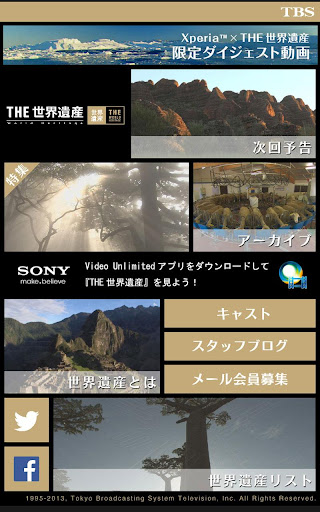…毎週日曜午後6時からOAの「THE 世界遺産」の最新予告が見られます。(Xperia(TM)限定で予告動画も見られます。)