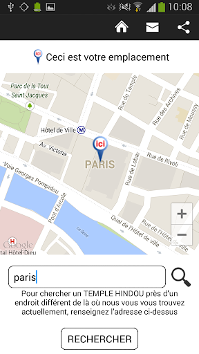 L’application TEMPLE HINDOU est l’outil indispensable pour trouver le temple le plus proche de l'endroit où vous vous trouvez. Peu importe le pays où vous êtes, ouvrez l’application TEMPLE HINDOU, placez-vous sur la carte ou entrez l’adresse de votre choix, et trouvez le temple le plus proche. Vous pouvez choisir entre voir les temples qui vous entourent sur une carte ou bien avoir leur liste complète, avec leurs adresses, leurs numéros de téléphone et la distance qui vous séparent d’eux.