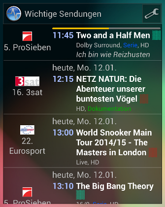 Widgets für wichtige und laufende Sendung geben einen schnellen Überblick über das TV-Programm.