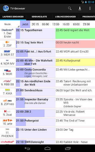 TV-Browser für Android ist eine elektronische Programmzeitschrift (FERNSEHEN KANN MAN DAMIT NICHT), mit über 400 Fernseh- und Radiosendern hauptsächlich aus Deuschland, Österreich, Schweiz, Dänemark und Polen (plus einige aus anderen Ländern). Die Daten werden aus dem Internet, zu einem vom Benutzer bestimmten Zeitpunkt, heruntergeladen (für bis zu drei Wochen) und stehen dann offline und werbefrei zur Verfügung.