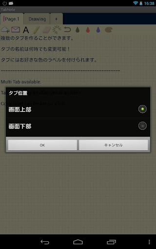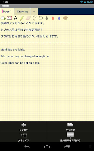 'TabNote' is a notepad managing notes with tabs. It is easy to find a note because both tabs and a note are displayed on the one activity(i.e. the same screen).