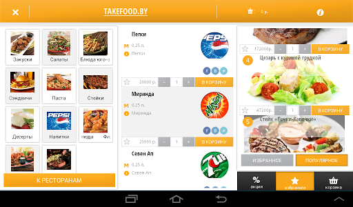 TAKEFOOD.BY - приложение для заказа еды с мобильного устройства. Объединяет лучшие службы доставки еды города и позволяет заказывать вашу любимую еду буквально за пару кликов!