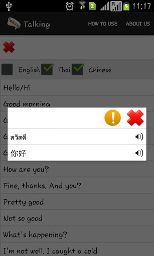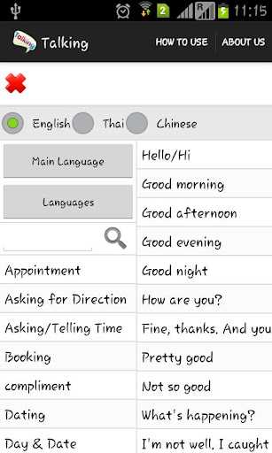 แอปพลิเคชัน Talking ฟรี สำหรับแอนดรอยด์ เป็นแอปฯที่ส่งเสริมการใช้ภาษาในการสื่อสารในชีวิตประจำวัน มีรองรับถึง 3