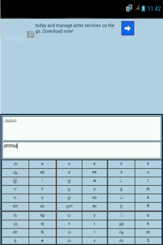 This android app helps you to write tamil words easy and fast. if you write "thamiz" and that will change it into "தமிழ்". Simply Type english in keyboard. it is useful Tamil Unicode converter.
