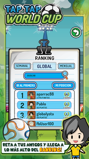 * Achieve the highest positions in the Tap Tap WorldCup players ranking.