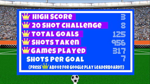2. 20 Shot Challenge: Who can score the most goals from 20 free kicks?? - linked to Google Play Leaderboards!