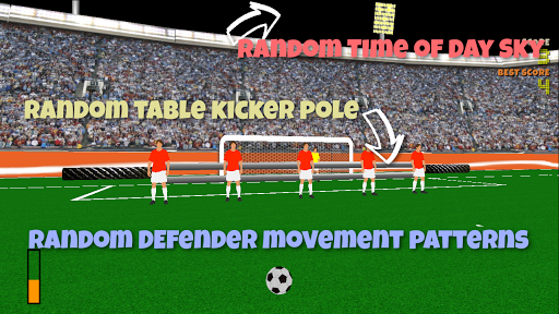 * Randomized defenders on table football style poles: speed, height, direction, and color!