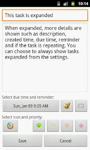 Task List Pro is a very customizable to-do list with lots of settings. Actions can be assigned to buttons and swipe movements to make the app behave like you want. An extensive FAQ is available within the app so check it out if you need any help or just some hints to get started.