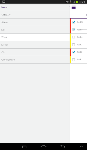 • The color strips on the left denote priority of tasks while the strips on the right denote the category of tasks