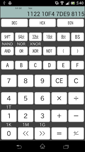 - bit shift keys('<<' and '>>' keys) in bin and hex mode.