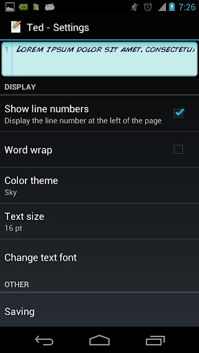 Ted is an Open Source, Ad-free, lightweight text editor, meant as a Notepad application, and not meant to edit big files.