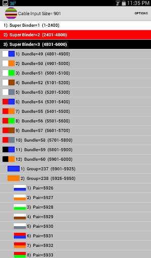 Telecom Color Code is a dynamic telecom cable count color code app. Made by a splicing technician, my telecom color code app will convert a multiple line cable count (not just a linear range of pairs) into its copper or fiber optic color code. Useful for splicers, engineers, installation repair technicians, and even managers who work with twisted copper pair or fiber optic cable counts and color codes.