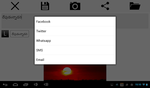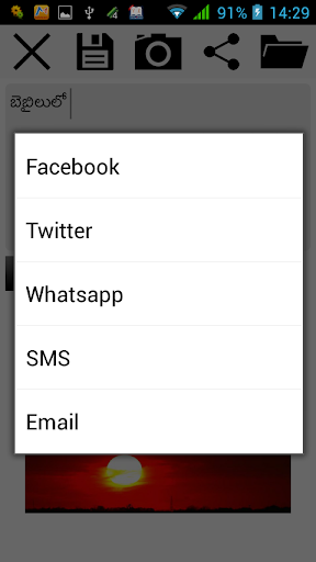 4. Share to all popular social networks like facebook, whatsapp, twitter Or you can email, sms to anyone in Telugu.