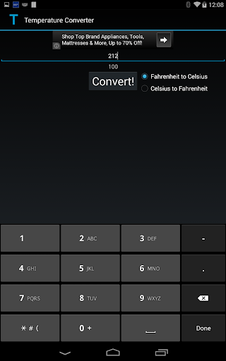 This App simply converts from Fahrenheit to Celsius and Vice Versa. The code is open source licensed under GPLv3 and posted to Github here (https://github.com/SaganSpirit8/Android-Temperature-Converter). Hopefully, the source code can help aspiring Android programmers to learn the beginning basics of Android App coding, including using advertising via Google AdMob.