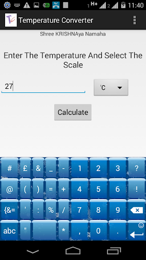 This is a Simple yet Very Useful App to convert Temperature from one scale to another scale. Feeling tedious to convert the temperature from Celsius to Fahrenheit, Fahrenheit to Kelvin, etc then this app is for you. Just enter the temperature and select the scale. The App displays the corresponding temperatures in all other scales.