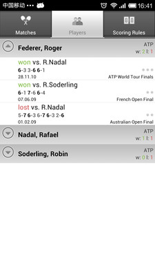 * Supports just any thinkable scoring configuration, like Grand-Slam, Davis Cup, pro-set, kids tennis, and of course, custom rules with multiple deuce and tie-break options