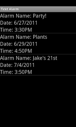 * Phone Shuts down or Resets? No Problem! Text Alarm will check the Alarms in the Phone when it boots back up and will reset your Alarms that are still valid and kicks out the rest!