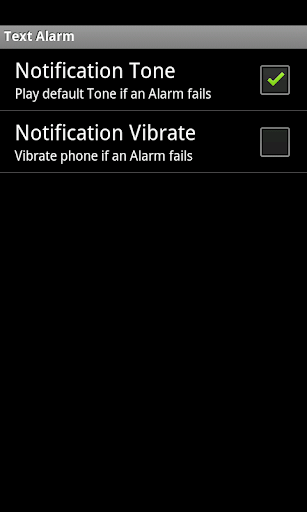 * Set notification to vibrate and or tone in case an Alarm does fail, right from the main menu!