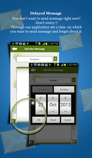 ⇒set timer to send message at a certain date and time, say to send birthday wishes to your loved ones at midnight or send any important message to your professional colleagues if you know you would be busy at that time in some other work, etc.