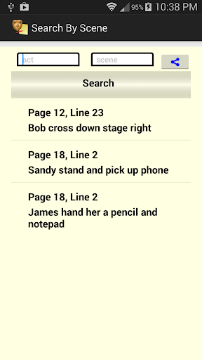 You can very quickly find the notes for any line in the play script, or the notes for an entire page or scene in the play script.