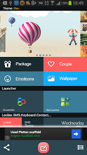 * Package theme -Contains a lot of interesting topics, such as sms, contact, locker, keyboard, theme, emoticon, live wallpaper, anything!