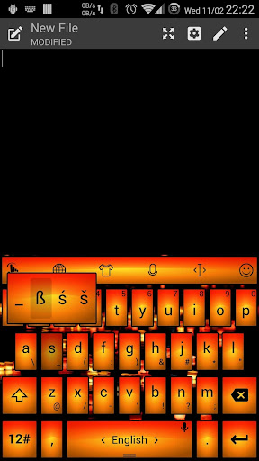 Gives a dark and gloss look to your TouchPal Keyboard with orange red keys and black background with led neon orange lights.