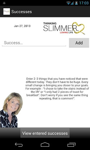 Personal success log for users of Thinking Slimmer Slimpod weight loss programmes. Log and check your measurements, compare before and after pictures to chart your progress and read top tips for losing weight.