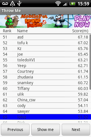 This application can let you know how far you can throw your cell phone. Just hold it to do a throwing action, but do not really throw it out. It can show you the best throwing distance.
