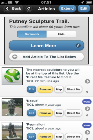The App allows the presentation of points of interest as small, easily updatable pieces of text -'TiCLs' - coupled with links chosen by the user. This means even complex informative trails can be created and kept updated very quickly and easily.