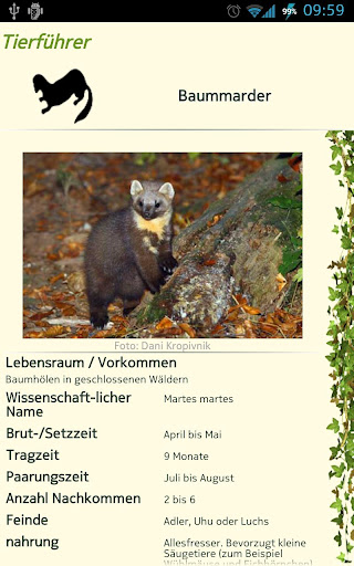 Das Tierführer App beinhaltet steckbriefartige Informationen über die in Deutschland in freier Wildbahn lebenden Tiere. Hier sind die Vorteile im Überblick: