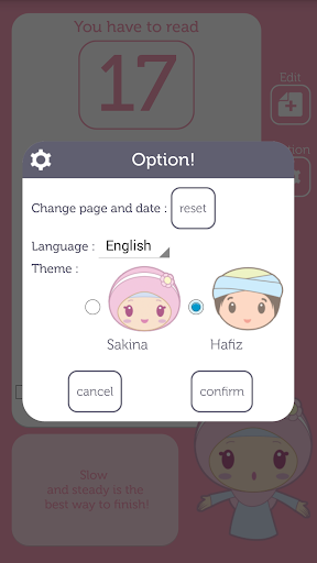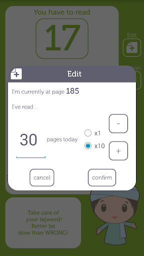 Do you know why most of us have the difficulty to finish (khatam) Quran? It's because you don't set a deadline for it! This app is designed to help and remind us everyday (optional), how many pages we should read a day to reach the finishing line in reading Quran!