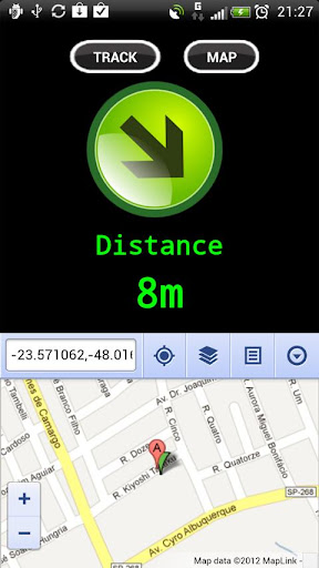 2 - Back in the main menu and click on the track, an arrow will appear when you click track he sent a SMS to the GPS-TRACKER this and responded when receiving the SMS, the arrow will be updated. If you want to see the map, simply click on map (this function do you use internet)