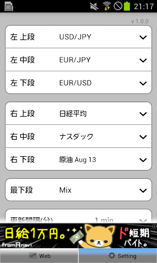 ウィジェットで最新のFX(為替)情報や各国の平均株価、先物情報、経済ニュース、経済指標などを見ることができます。