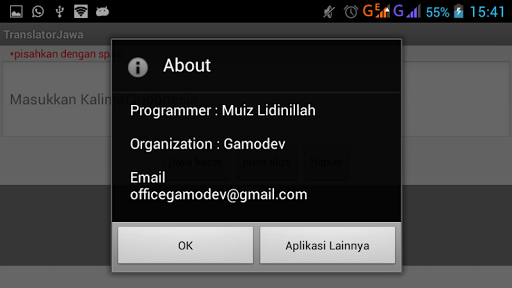 Aplikasi Translator Jawa membantu untuk menerjemahkan bahasa Indonesia ke bahasa jawa kasar (ngoko), dan jawa alus (krama inggil).
