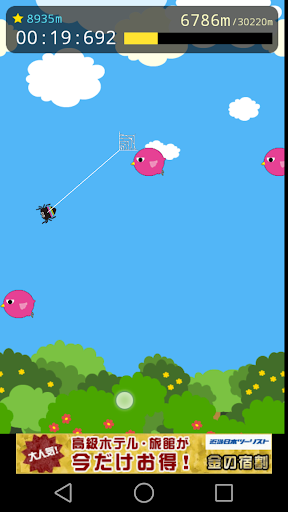 ・画面上に飛んでいるピンクバードやバットラットに上手に糸を引っかけてタイミング良く切ることで前へと進みます