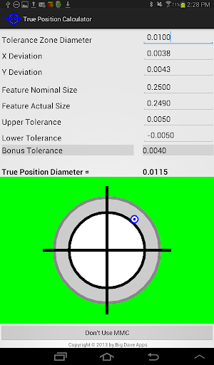 GD&T True Position calculator with MMC (Maximum Material Condition) Bonus Tolerance.