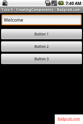 This is the result of a simple application from a tutorial to learn how to create components with Android.