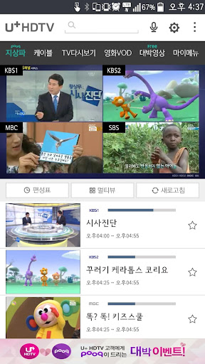 - 멀티뷰 : 2개/3개/4개 까지 보고 싶은 채널 선택 후 멀티 시청 가능 (단말사양에 따라 기능 제공)