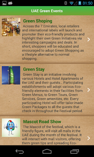 UAE Green Festival App is a free application specially designed to update subscribers with the latest news of the country’s premier sustainable celebration; UAE Green Festival. The app provides a detailed account of the various activities of the festival. It also offers green tips and sustainable instructions