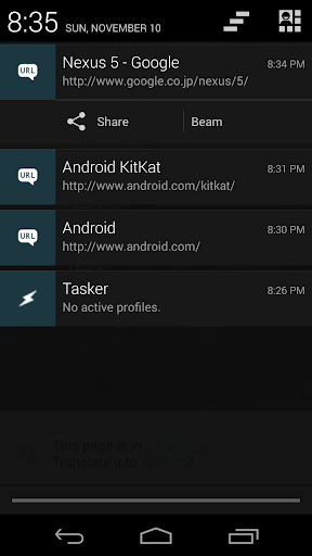 This is the application to send URL to notification panel. You can open the URL from notification. This app gives you the useful way to temporarily leave URL you want to read later in the case the URL is not so important to add to bookmark.